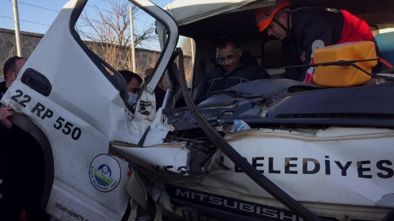 Edinilen bilgiye göre, içinde 3 personelin bulunduğu Keşan Belediyesi’ne ait çöp kamyonu, o sırada yasak olmasına rağmen yol kenarında park eden kamyona arkadan çarptı.