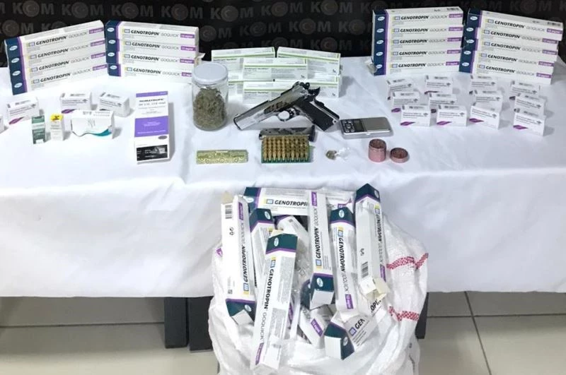 Edinilen bilgiye göre, İl Emniyet Müdürlüğü Kaçakçılık ve Organize Suçlarla Mücadele Şubesi ekiplerinin, F.K. isimli bir şahsın evinde yapılan operasyon sonucu 40 kutu farklı markalarda faturasız vücut geliştirmede kullanılan hormon ilaçları, 1 adet tabanca, 50 adet tabanca fişeği elle geçirildi. F.K. ile aynı evde ikamet eden E.B.Ö. isimli şahsın odasında ise uyuşturucu madde, 1 adet çalışır vaziyette hassas terazi, 1 adet esrar öğütme makinası ve sigara sarma kağıdı ele geçirildi. Olayla ilgili F.K. ve E.B.Ö. isimli şahıslar gözaltına alındı.