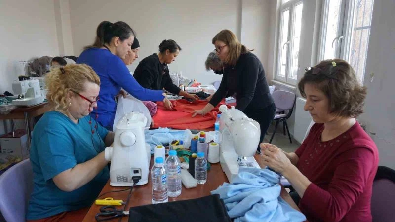 Edirne’de depremzedelere destek için bir araya gelen Halk Eğitim Merkezi usta öğreticileri, kursiyerler ve ev hanımları tek yürek olarak, onları sıcak tutacak kıyafetler dikmeye başladı.