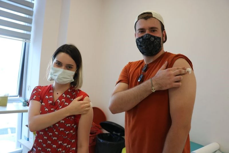 Aşı olmaya gelen vatandaşlardan Öykün Uçkun, “Heyecanlıydım, aşımı olmaya geldim ve aşı oldum. Heyecanla sıramın gelmesini bekliyordum sıram geldi ve aşımı oldum, herhangi bir acı veya ağrı hissetmedim” dedi.