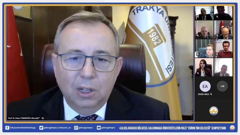 Bölgesel kalkınmada üniversitelerin rolünü Trakya Üniversitesi özelinden açıklayan Rektör Prof. Dr. Erhan Tabakoğlu ise, “Akademik ve idari olmak üzere 5 bin çalışanı, 42 bin öğrencisi ile şehir yaşamında önemli bir yere sahibiz. Pandemiyle birlikte bir kez daha gördük ki şehirler, öğrenci olmadığında suyu çekilmiş değirmen gibi kalır ve mahzunlaşır. Öğrenciler, bir şehre anlam ve değer katarken hem ekonomik hem de sosyal açıdan büyük katkı sağlarlar” diye konuştu.