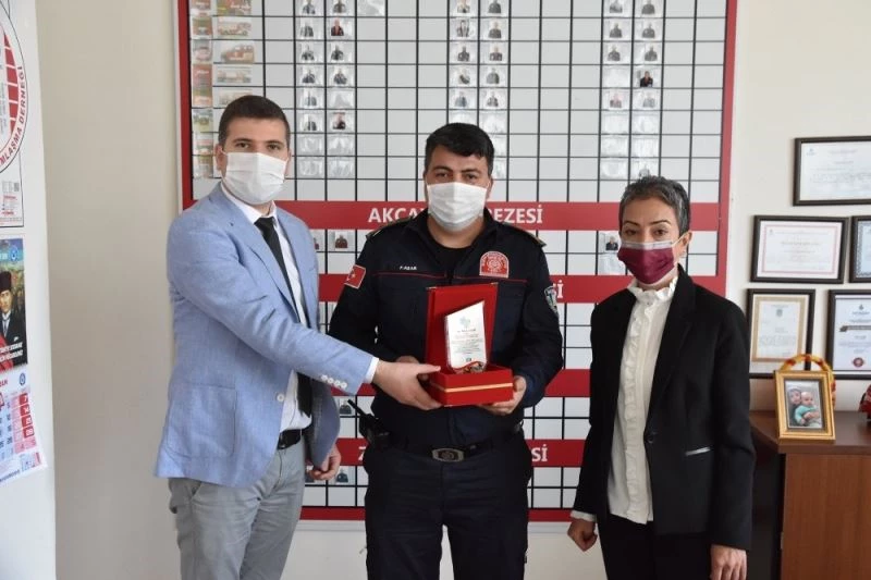 İzmir depreminde görev alan itfaiyecilere Edremit Belediyesi plaket ile teşekkür etti.
