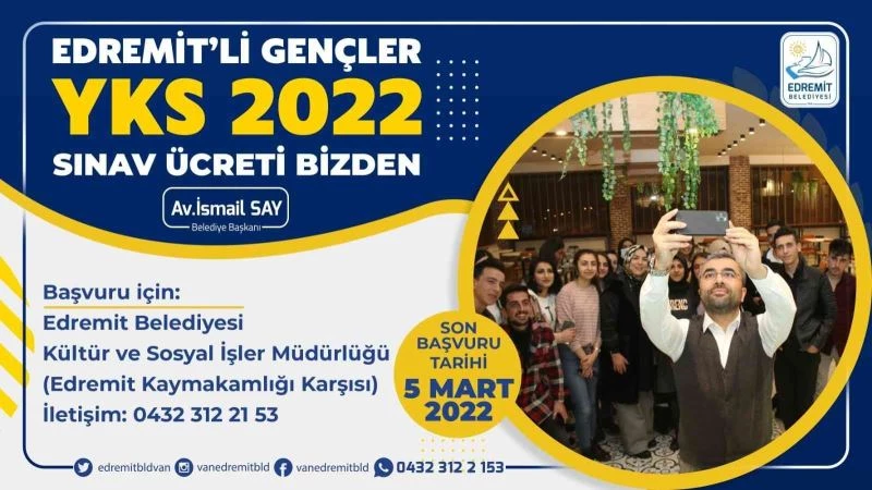 Van’ın Edremit Belediye Başkanı İsmail Say, Yükseköğretim Kurumları Sınavına (YKS) girecek olan ihtiyaç sahibi öğrencilerin başvuru ücretlerinin belediye tarafından karşılanacağını duyurdu.