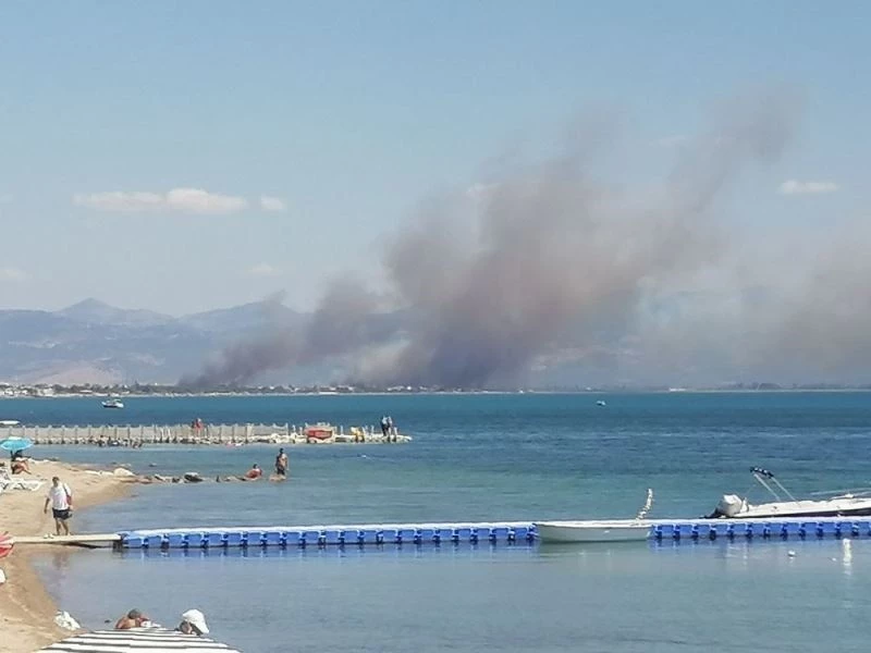 Balıkesir’e bağlı Edremit Körfezi kıyısındaki sazlık alanda çıkan yangın yerleşim yerlerine doğru ilerliyor. Yangına çok sayıda orman bölge ve itfaiye ekibi sevk edildi. Havadan da bir helikopter söndürme çalışmalarına destek veriyor.