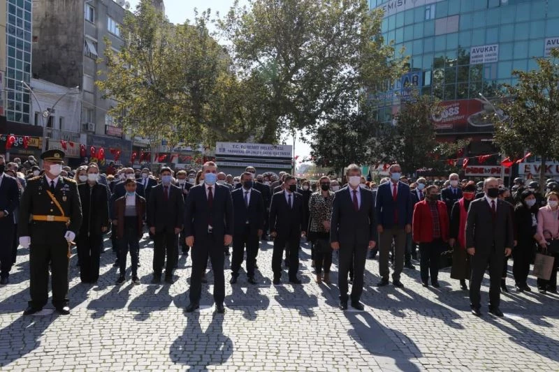 Balıkesir’in Edremit ilçesinde 29 Ekim Cumhuriyet Bayramı’nın 98. yıl dönümü kutlamaları, düzenlenen çelenk sunma töreniyle başladı.