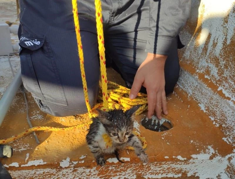 Edinilen bilgiye göre olay, Altınoluk Mahallesi İsmet Paşa Caddesi 10. Sokakta meydana geldi. Su giderine düştüğü ihbarını alan Büyükşehir Edremit İtfaiye ekipleri, yoğun uğraş sonucu uzatılan halat yardımı ile kediyi çıkarmayı başardı.