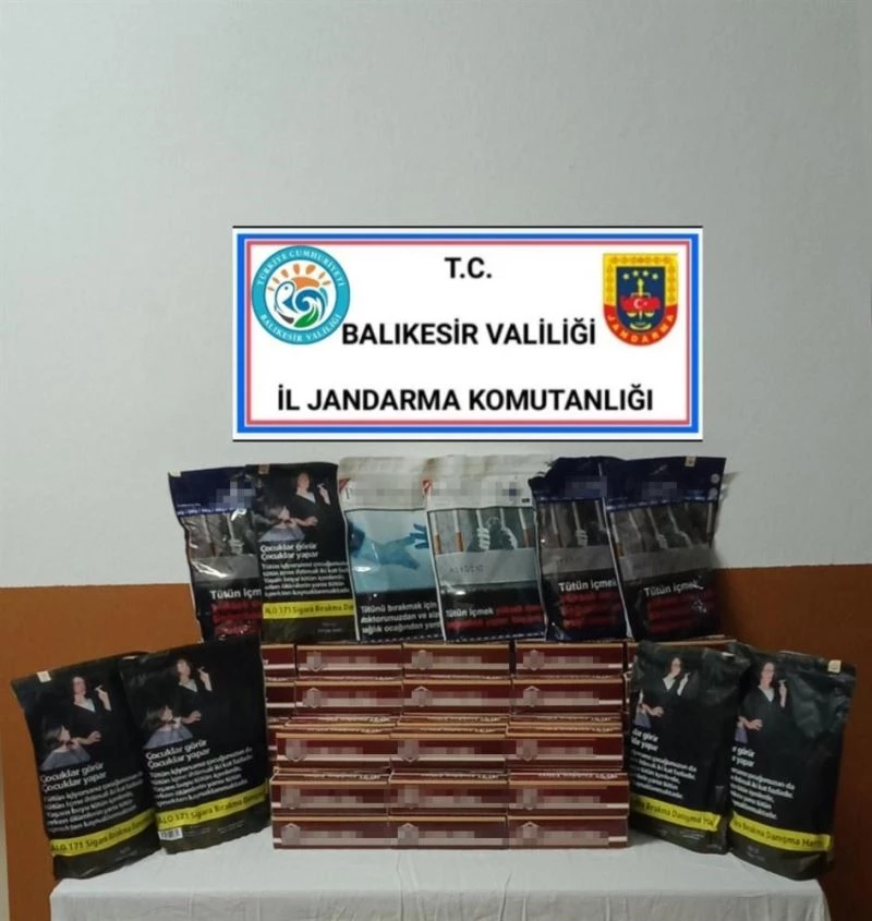 Edinilen bilgiye göre, Balıkesir İl Jandarma Komutanlığı ekipleri tarafından kaçak ve bandrolsüz sigara ticaretine yönelik yapılan istihbari çalışmalar neticesinde, Edremit’te S.A. isimli kişinin kendi adına tescilli ve sürücülüğünü yaptığı 34 LL ... plakalı aracında yapılan kontrollerde; toplam 10 kg bandrolsüz tütün ve 100 kutu 20 bin adet makaron ele geçirildi. Olayla ilgili olarak ele geçirilen malzemelere el konuldu. Şüpheliler hakkında adli tahkikata başlanıldı. Halkın emniyet ve asayişinin sağlanmasına yönelik çalışmalara jandarma ekiplerinin aralıksız devam edeceği açıklandı.