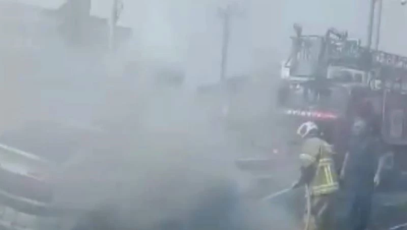 Balıkesir’in Edremit ilçesinde çıkan araç yangını, karayolunu duman altında bıraktı.