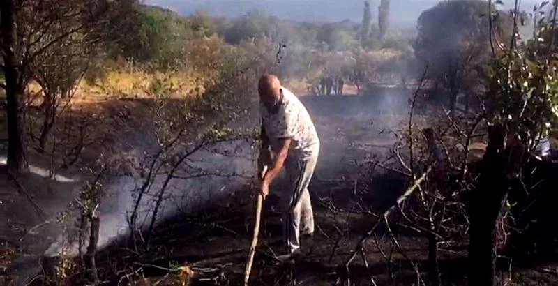 Kazdağları eteklerinde çıkan orman yangını imece usulü müdahale edilerek söndürüldü.
