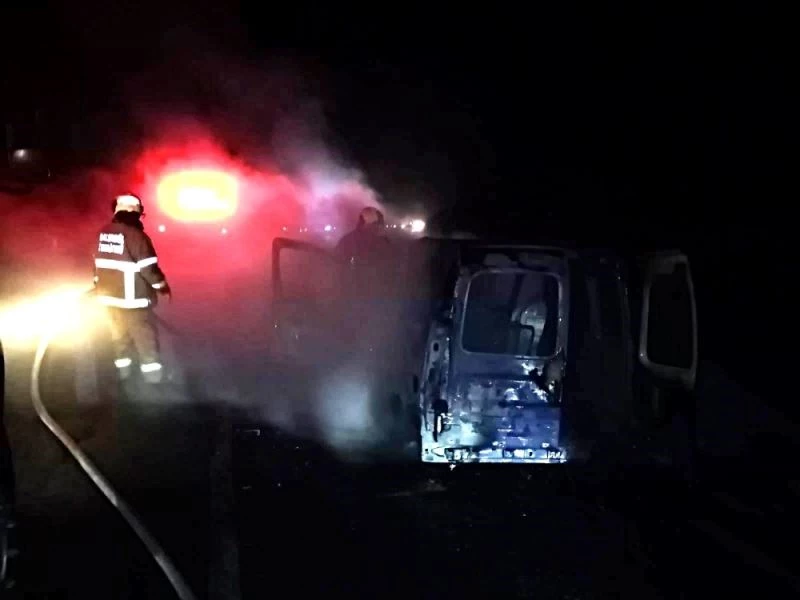 Edremit’te seyir halindeki ticari araç alev alev yandı