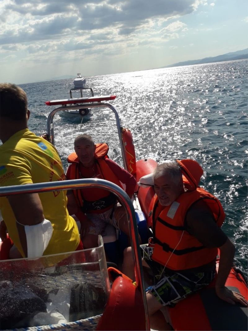 Sahildeki tatilciler bu sefer hemen Sahil Güvenlik ve Balıkesir Büyükşehir Belediyesi İtfaiye Daire Başkanlığı su altı ve su üstü arama kurtarma ekibinden yardım istedi. Alarma geçen ve yakında bulunan İtfaiye Bot 6 cankurtaran ekipleri, sörfçüyü ve babası ile arkadaşlarını kurtararak teknelerini de batmaktan kurtarıp botla kıyıya çekti.