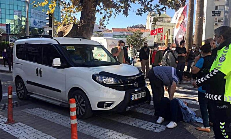 Balıkesir’in Edremit ilçesinde yaya geçidinde yolun karşısına geçmek isteyen kadına araç çarptı.
