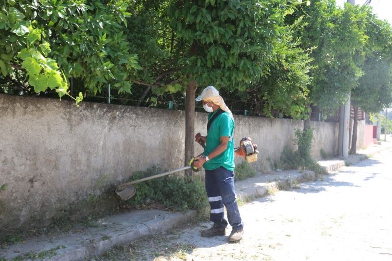 Umurlu Mahallesi genelinde bulunan yeşil alanları düzenleyen Efeler Belediyesi Park ve Bahçeler Müdürlüğü çalışanları, yol kenarlarında uzamış çimler ve çalılar için biçme çalışması gerçekleştirdi.