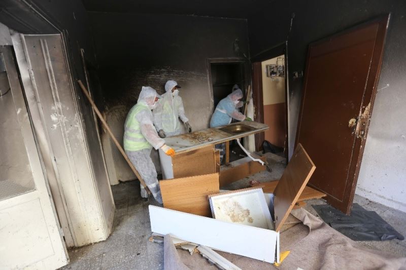 Efeler Belediyesi, Köprülü Mahallesi’nde tüp patlaması sonucu çıkan yangın sebebiyle hasar oluşan evde temizlik çalışması ve hijyen çalışması gerçekleştirdi.