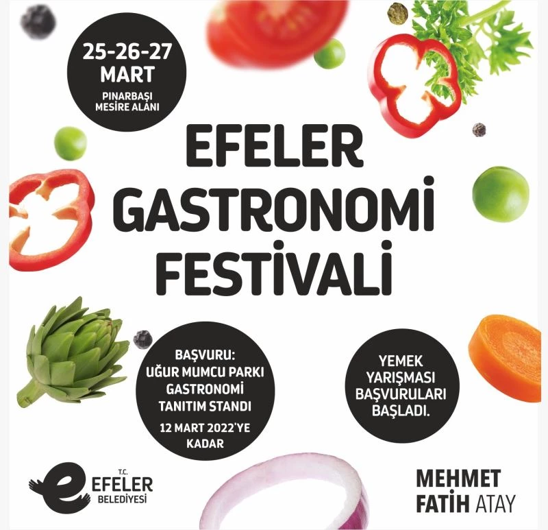 Kentin yöresel ürünleri ve lezzetlerinin tanıtımı için önemli projelere imza atan Efeler Belediye Başkanı Mehmet Fatih Atay, ’Sağlıklı Yaşam, Sağlıklı Beslenme’ sloganı ile gastronomi festivali için düğmeye bastı. Eğitim, sergi, panel, konser ve tadım çalışmalarının da gerçekleştirileceği 1. Efeler Gastronomi Festivali için geri sayım başladı. 2020 yılında pandemi tedbirleri nedeniyle ertelenen Efeler Gastronomi Festivali, bu yıl 25-27 Mart 2022 tarihleri arasında birbirinden renkli etkinliklerle gerçekleştirilecek. Festival 25 Mart Cuma günü saat 14.00’te düzenlenecek açılış töreni ile başlayacak.