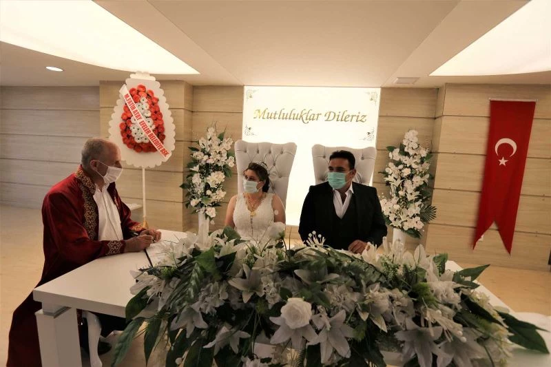 İçişleri Bakanlığı’nın 1 Haziran 2021 tarihli genelgesi gereği nikahlar pandemi tedbirlerine uyularak gerçekleştiriliyor. Alanın büyüklüğüne göre sınırlı sayıda davetli kabul edilen nikâh törenlerinde 6 metrekare başına 1 davetliye izin veriliyor.