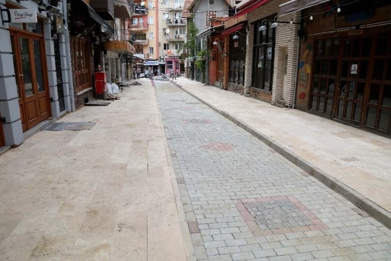 Çalışmaları hızla tamamlamak için sokakların boş olmasını iyi değerlendiren Efeler Belediyesi çalışanları, iş makineleri ile mevcut eskimiş parke taşlarını söküp mermerle değiştirirken, kaldırım yapımında kullanılan bordür taşlarının da döşemesini yaptı. Sokağın, uygulanacak ışıklandırma sistemi ile bambaşka bir görünüme kavuşması bekleniyor.