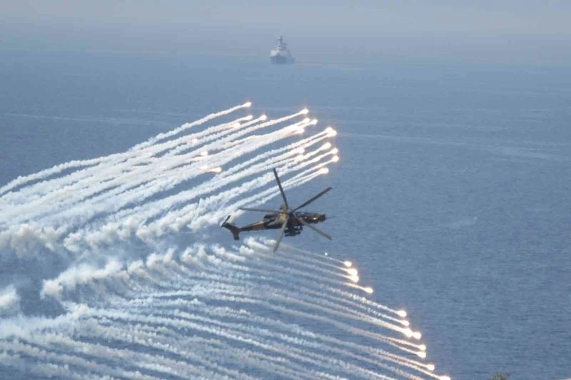 Amfibi hücum harekatını destekleyen ateşler çerçevesinde keşif, gözetleme, ateş destek unsurları ve taarruz helikopterleri eş zamanlı koordineli hareketiyle senaryo gereği tespit edilen düşman zırhlı araçları, tanksavar atışlarıyla imha edildi. Hava desteğiyle beraber muharebe arama kurtarma harekatı, hava savunması, zamana duyarlı yüksek değerlikli hedefe direkt görev harekatı icra edilirken, uzman nişancı unsuru tarafından kritik hedeflerin etkisiz hale getirildi.