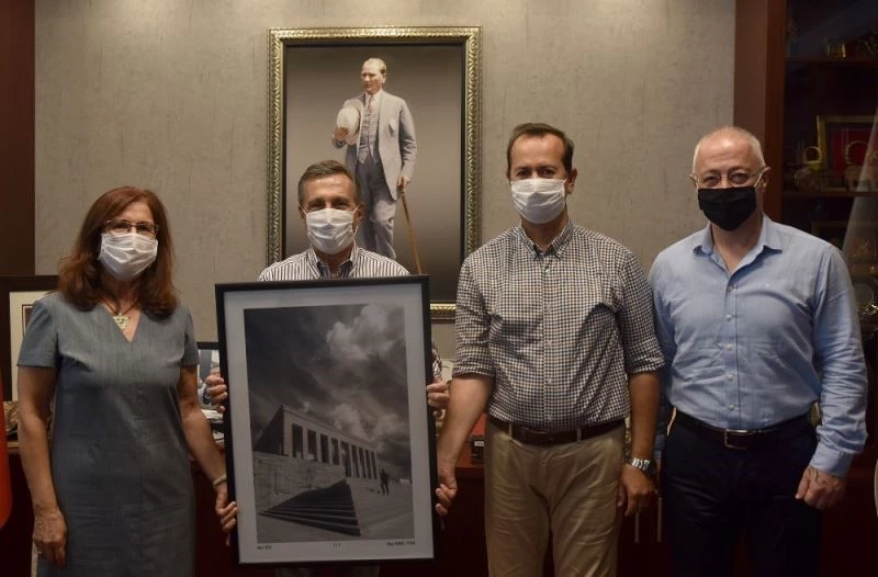 Buluşma sonunda EFSAD yönetimi, Başkan Ataç’a siyah-beyaz bir Anıtkabir fotoğrafı armağan etti.