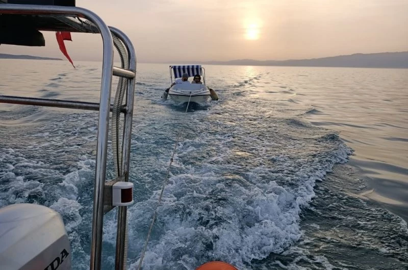 Balıkesir’in Burhaniye ilçesin açıklarında içinde biri kadın iki kişinin bulunduğu özel bir fiber teknenin makinesi arıza yaptı.