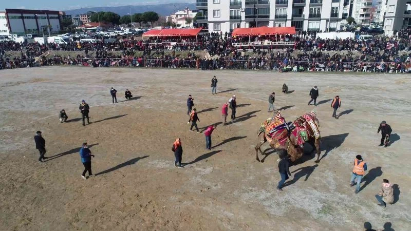 Ege’nin geleneksel deve güreşi havadan görüntülendi