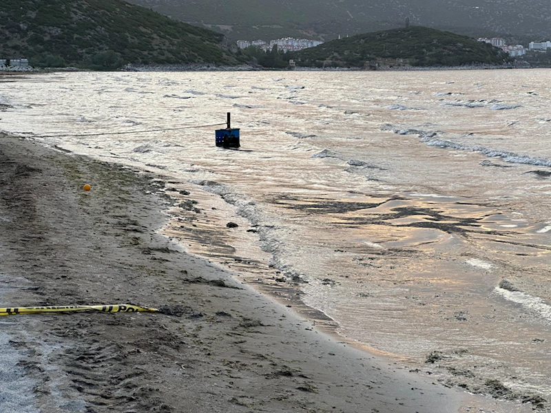 Sahilde nöbet tutan ekipler, el bombalarının bulunduğu alanı güvenlik şeridi ile kapattı.