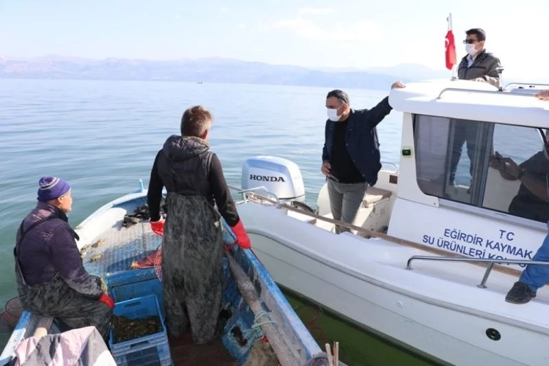 ISPARTA (İHA) – Eğirdir Gölü’ndeki su ürünleri denetimine katılan Eğirdir Kaymakamı Adem Çelik, balıkçılar ile görüşerek, sorunlarını dinledi.