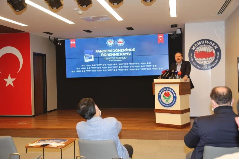 Eğitim Bir-Sen Başkanı Yalçın, yapılan araştırmanın uzaktan eğitim sürecinde öğrencilerin öğrenme kayıplarının telafi edilmesine, öğrenciler arası eşitsizliklerin en aza indirilmesine ilişkin etkin politikalara rehberlik etmesinin bir gayret olduğunu belirterek, “Salgın hayatın tamamını doğal olarak etkilemiş durumda. Ekonomiden çalışmaya, sağlıktan eğitime, üretim sektörüne varan kadar her tarafı etkilemiş durumda. İlk başlardan salgının etkisinin azaltılması için dünya genelinde içinde bulunduğumuz sektör itibariyle eğitime de ara verilmiş yüz yüze eğitim ileriye atılmıştır. Salgının kontrol altına alınmasıyla birlikte birçok ülke, uzaktan eğitimin uzamasının, okuldan uzak kalan öğrencilerin öğrenme kayıplarını ve eşitsizlikleri derinleştirme riski taşıması sebebiyle okulların yüz yüze eğitime açılması öncelikli hale gelmiştir. Eğitim-Bir-Sen olarak, salgın sürecinde ortaya çıkan ülkemizdeki öğrenme kayıplarına dikkat çekmek amacıyla ‘Pandemi Döneminde Öğrenme Kaybı: Tespit ve Öneriler’ başlıklı raporu hazırladık. Dünyada şu an öğrenme kayıplarına ilişkin çok ciddi araştırmalar yapılıyor. Ülkemizde de bu anlamda yapılmış ilk çalışma özelliğini taşıyor” dedi.