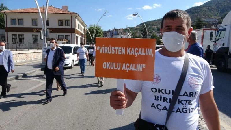 Tokat’ta, eğitimciler "Okulları birlikte açacağız” sloganı çerçevesinde farkındalık oluşturmak için yürüyüş yaptı.