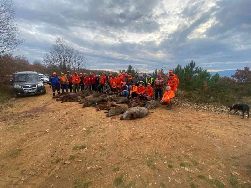 Bursa’nın İznik ilçesinde bağ ve bahçelere zarar veren tam 33 domuz, avcılar tarafından bir günde vuruldu.
