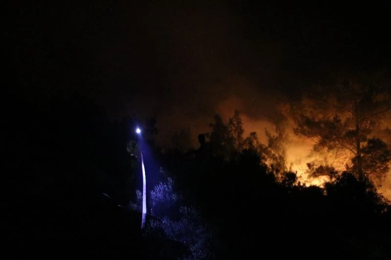 Bölgede kısa süreli yağmur yağarken, ekipler tırmanarak çıktıkları dağlık bölgelerde yangını söndürmek için müdahalesini sürdürüyor.
