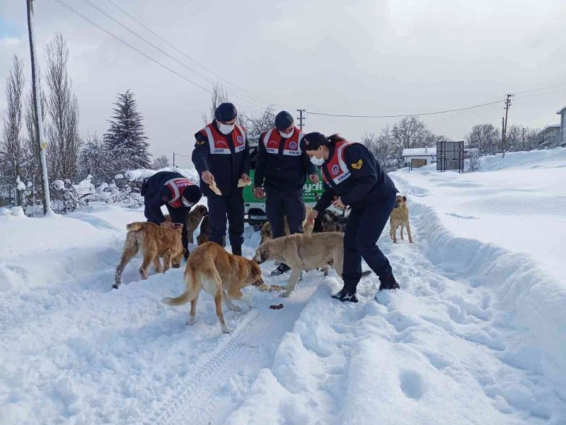 Eksi 10 derecede yaban ve sokak hayvanlarına jandarma şefkati