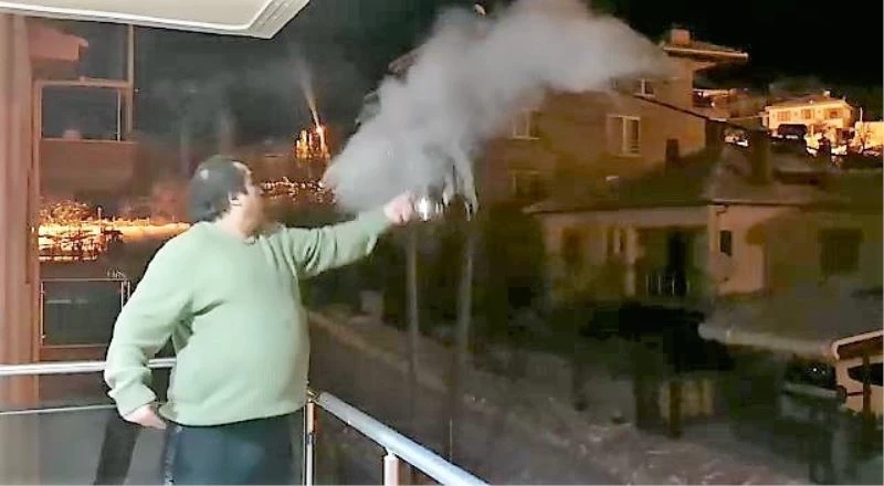 Ağır kış şartlarının etkisini sürdürdüğü ilçede görev yapan gazeteci Sezgin Özdemir, son 10 yılın en soğuk günlerini yaşayan Çameli’de hakim olan dondurucu havayı yaptığı deneyle gözler önüne serdi. Özdemir’in evinin balkonundan havaya bıraktığı hem sıcak hem de soğuk su, birkaç saniyede kristalleşerek buz tuttu.