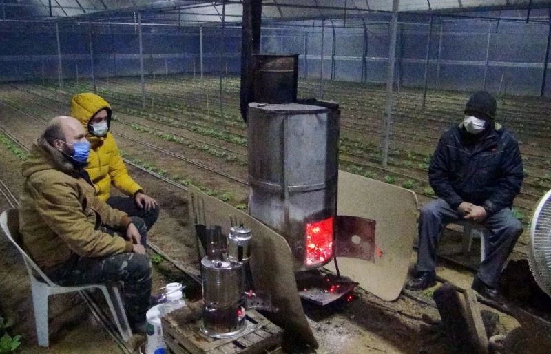 Muğla’da son günlerde etkili olan soğuk hava dalgası sonrası sera üreticileri de ürünlerin zirai dondan etkilenmemesi için önlem amacıyla seralarda sabaha kadar nöbet tutarken, sera içindeki sobaya sürekli odun attı.