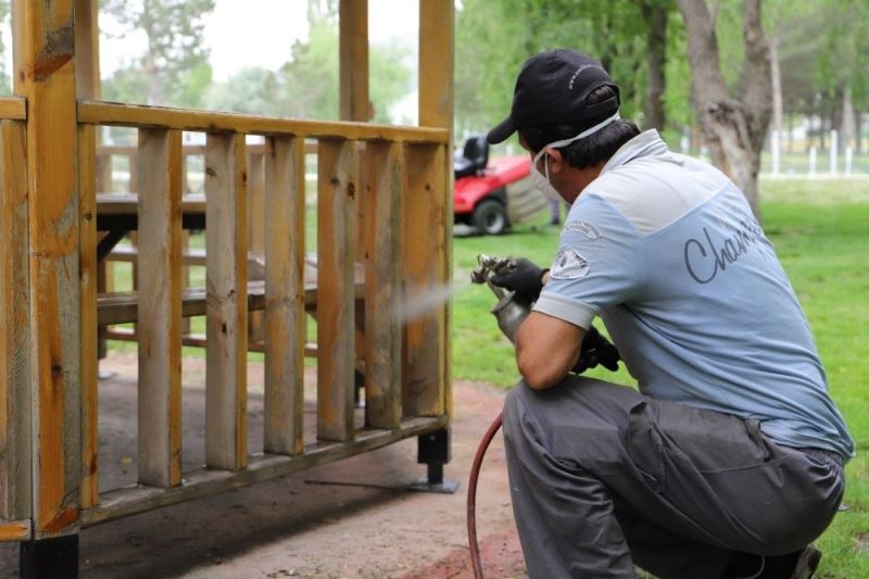 Destek Hizmetleri Müdürlüğü marangozhane personelleri ise mesire alanına tamamen Erzincan Belediyesinin üretimi olan yeni pergola ve kamelyaların kurulumunu yapıyor. Tahrip olmuş ahşap kamelya ve pergolaların tadilatını yapıp vernikliyor. Ayrıca alanda bulunan eskimiş ahşap çitlerin yerine yine Erzincan Belediyesinin kendi üretimi olan ahşap çitlerin kurulumunu gerçekleştiriyorlar.