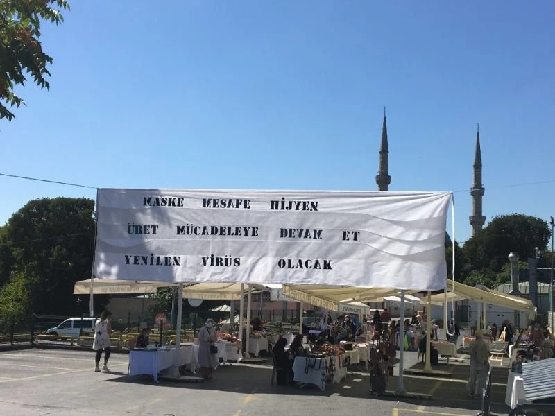 Eyüpsultan Belediyesi, el emeği göz nuru ürünlerini kazanca dönüştürmek isteyen kadınları El Emeği Ürünleri Açık Hava Festivali’nde bir araya getirdi. Eyüpsultan Belediyesi Kadın ve Aile Müdürlüğü tarafından organize edilen festivale, vatandaşlar da ilgi gösterdi. Birbirinden renkli patikler, örme bebekler, ebru, el işlemesi çanta gibi birçok çeşit ürün vatandaşların beğenisine sunuldu. Eyüpsultan’da gerçekleştirilen festivalin girişinde ise, “Maske, mesafe ve hijyen. Üret mücadeleye devam et. Yenilen virüs olacak” yazılı maske şeklindeki pankart dikkat çekti. Festival pazar gününe kadar devam edecek.