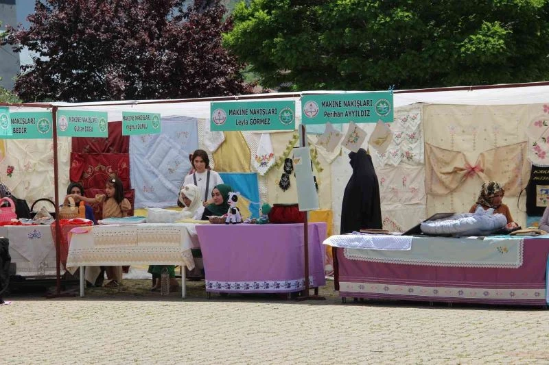 Halk Eğitimi Merkezi Müdürlüğü olarak yaklaşık 15 dalda 50 kursiyerin çıkartmış olduğu ürünlerle yıl sonu sergilerini gerçekleştirdiklerini belirten İlçe HEM Müdür Yardımcısı Ferhat Sönmez, "Arkadaşlarımız, usta öğreticilerimiz, ev hanımlarımız el emeği göz nuru ürünlerini burada sergilemiş bulunuyorlar. Bir birinden değerli, birbirinden kıymetli ürünler, yıl boyu çok ciddi emekler sarf edilerek yapılmış ürünler şu an burada sergilenmiş oluyor. Bu yılki yılsonu sergimizin bizim için çok anlam ifade eden özel bir tarafı var. Geçen yıl korona virüsten kaybettiğimiz usta öğreticimiz Neriman Özgün ve yakın zamanda kaybettiğimiz daha önce bizim kurum müdürlüğümüzü yapmış Abdulvahap Salcan hocamızın anısına biz böyle bir sergi düzenlemiş bulunuyoruz. Çok anlamlı gerçekten bizim için. Normalde her yıl geleneksel olarak düzenlemiş olduğumuz bu sergide müzikal gösteriler ve eğlenceler de oluyordu ama bu yıl özellikle bunu yapmama kararı aldık ve onların ruhlarına okuduğumuz Kur’an-ı Kerim hatim dualarını okuyarak biz açılışımızı gerçekleştirdik" diye konuştu.