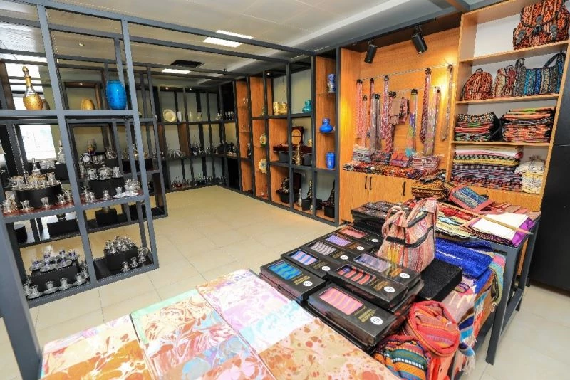 Naci Topçuoğlu Meslek Yüksekokulu Müdürü Prof. Dr. Hüseyin Bozkurt, Yüksekokulda üretilen ayakkabı modellerinin, kutnudan imal edilen fular, kravat ve çeşitli süs ürünleri ile beraber, cam işleme atölyesinde üretilen, geleneksel ve modern motiflere sahip dekoratif çalışmaların kampüs içerisinde bulunan mağazada satışa sunulduğunu belirtti.