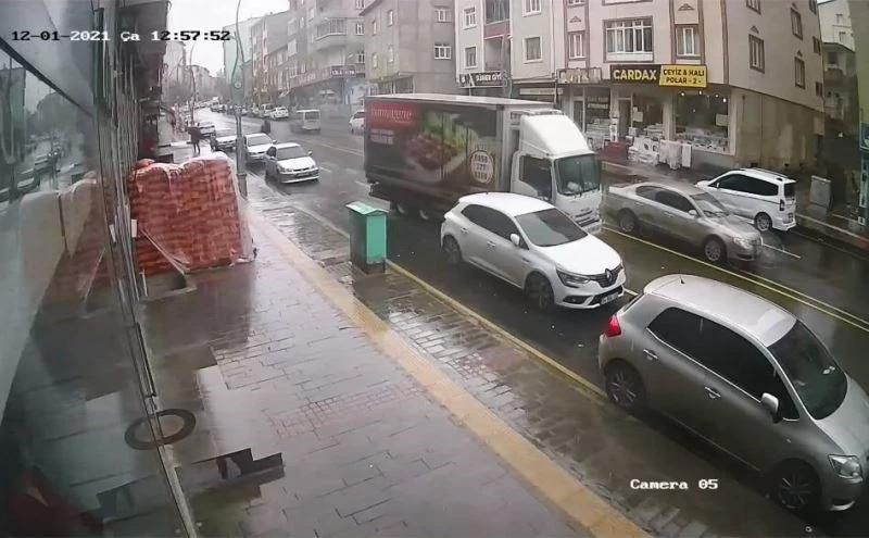 Olayda park halindeki yaklaşık 15 araç hasar görürken, kaldırım ve yol üzerinde bulunanlar ise kamyonetin altında kalmaktan şans eseri kurtuldu. Yaşananlar ise güvenlik kamerasına anbean yansıdı.