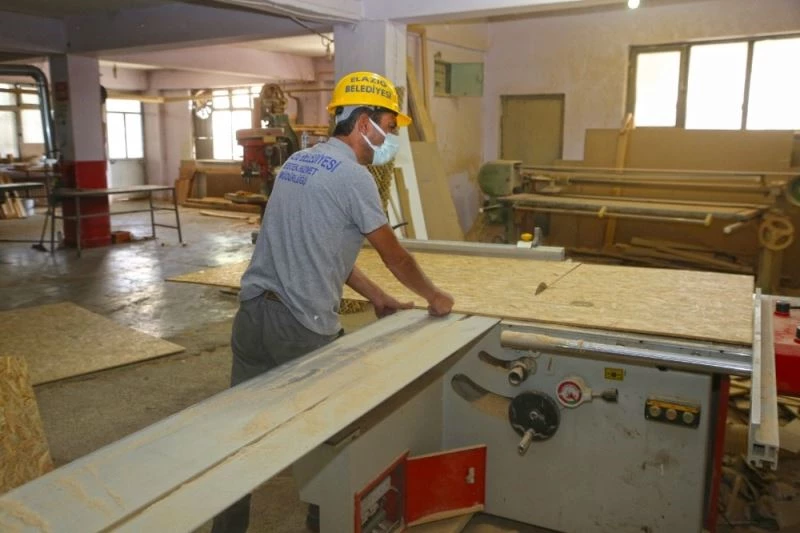 Elazığ Belediyesi Destek Hizmetleri Müdürlüğü atölyeleri, kent genelinde park, bahçe, okul ve ibadethanelerde kullanılan mobilya üretim çalışmaları yapıyor. Belediye kaynaklarını etkin ve verimli bir şekilde kullanarak gerçekleştirilen çalışmalar kapsamında son bir yılda bin 344 adet bank, 76 adet otobüs durağı, 50 adet kedi evi, 61 adet köpek evi ile bin 769 adet masa sandalye gibi ofis malzemesi üretimi gerçekleştirildiği bildirildi. Üretilen ürünlerin ihtiyaç duyular noktalarda hizmete sunulduğu aktarıldı. Üretilen ürünlerin şehir ihtiyacının yanı sıra ilçe ve komşu il belediyelerine göndererek destek sağladığı kaydedildi.