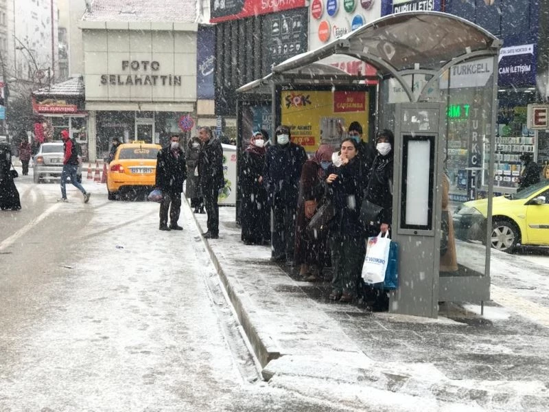 Elazığ’da öğle saatlerinde başlayan kar yağışı kenti beyaza bürüdü.