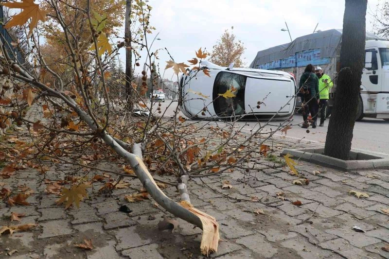 Elazığ’da ağaca çarpan otomobil yan yattı: 1 yaralı