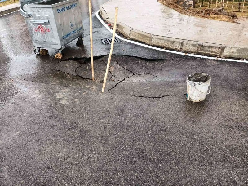 Elazığ’da etkili olan yağışlar karayolunda çökmeye neden oldu.