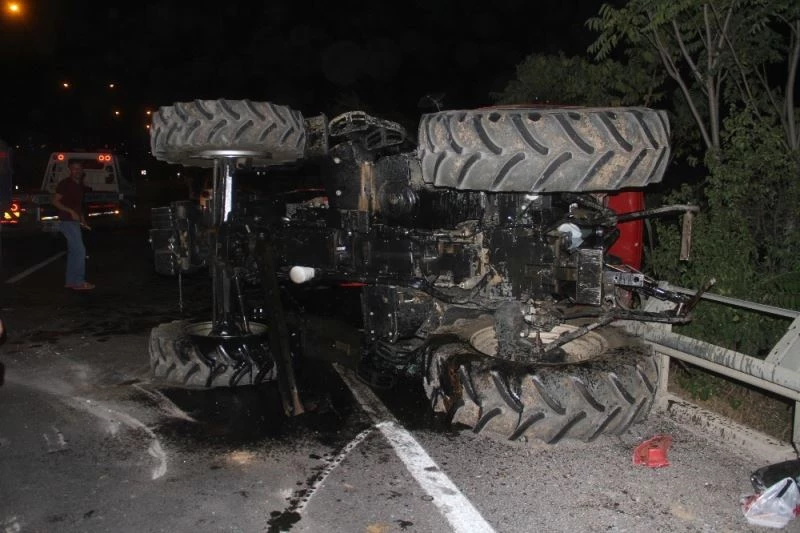 Elazığ’da bariyerlere çarparak devrilen traktördeki 2 kişi yaralandı.