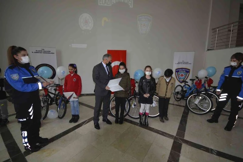 Üstün gayret ve başarı göstererek, kategorilerinde 1’inci, 2’nci ve 3’üncü olarak dereceye giren 9 öğrenci, İl Emniyet Müdürü Celal Sel, İl Milli Eğitim Müdürü Feyzi Gürtürk ve 3’üncü Sınıf Emniyet Müdürü Neşe Sel tarafından bisiklet hediye edilerek ödüllendirildi.