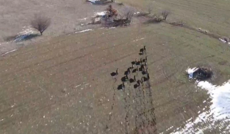 Ağın ilçesine bağlı Öğrendik köyü mevkiinin yüksek rakımlı bölgesinde Drone pilotu Mehmet Yılmaz, domuz sürüsünü görüntüledi. Keban Baraj Gölü’nün üst kısmında karların eridiği bölgede domuzları gören Yılmaz, drone ile uzun süre onları yakından takip etti.Yaklaşık 20 civarında olan sürü uzun süre doğada koştuktan sonra gözden kayboldu.