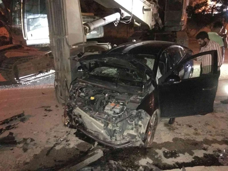 Elazığ’da park halindeki ekskavatöre çarpan otomobil hurdaya dönerken, kazada 2’si ağır olmak üzere toplamda 3 kişi yaralandı.