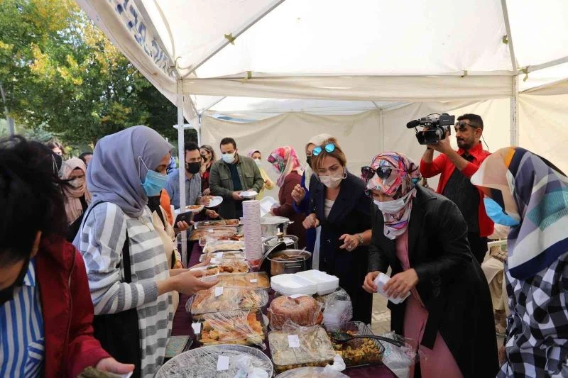 Elazığ’da Fırat Üniversitesi Kadın Kolları grubu tarafından üniversite kampüsünde maddi durumu iyi olmayan öğrencilere destek olmak amacıyla hayır çadırı açıldı. İl Protokolünün eşlerinin de katıldığı çadırda elde edilecek gelir, maddi durumu iyi olmayan öğrencilere destek için harcanacak. Yoğun katılımın yaşandığı hayır çadırıyla ilgili açıklama yapan Fırat Üniversitesi Kadın Kolu Başkanı Hülya Göktaş, “Kadın Kolları olarak üniversitemizde maddi durumu iyi olmayan öğrencilerimize destek olabilmek için bir hayır çadırı düzenlemek istedik. Buradan elde edeceğimiz gelirle üniversitemizdeki maddi durumu iyi olmayan öğrencilerimize yardımcı olacağız. Üniversitemizde okuyan, özellikle il dışından gelen öğrencilerimizin aileleri hiç merak etmesinler evlatları emin ellerde. Onlara belki anneleri gibi olamasak da anne şefkati göstermek için elimizden geleni yapıyoruz ve yapmaya devam edeceğiz. Bizim dinimizde, kültürümüzde yardımlaşmak çok önemli. Bugün de hem öğrencilerimiz hem de akademik ve idari personellerimiz için çok güzel yiyecekler hazırladık” dedi.