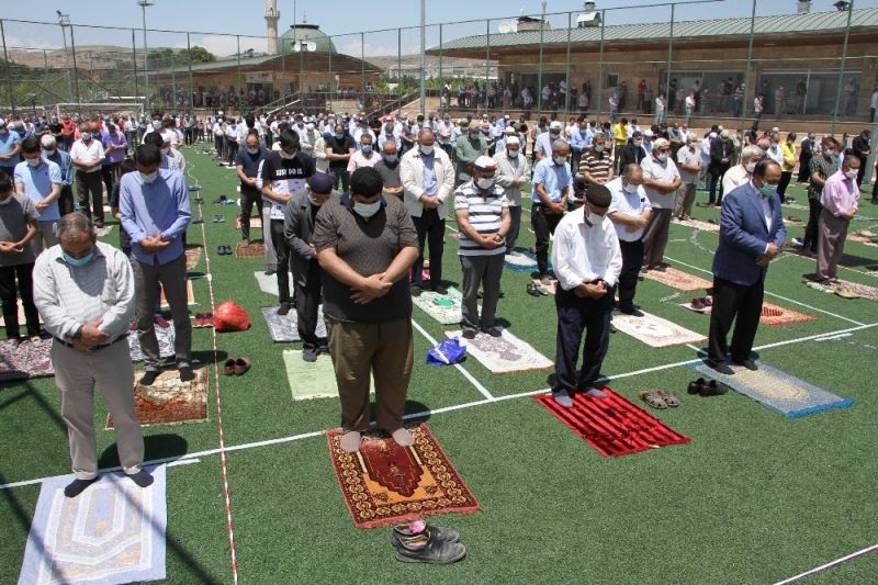 Ülke genelinde olduğu gibi Elazığ’da da cuma namazı korona virüs (Covid-19) tedbirleri kapsamında kılındı. Bu hafta camilerin bahçesinin yanı sıra Kültür Park’ta bulunan futbol ve spor sahalarında da sosyal mesafeli bir şekilde cuma namazı kılındı. İl Müftüsü Selami Aydın tarafından futbol sahasında kıldırılan namaz öncesinde her türlü tedbir alınırken, ilk defa 65 yaş üstündekiler de kısıtlamanın esnetilmesiyle namaza gelebildi.