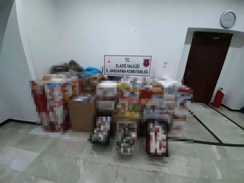 Elazığ’da jandarma ekipleri tarafından kaçakçılara yönelik düzenlenen operasyonda 1 kişi gözaltına alınırken, 375 kilo tütün, 256 bin adet dolu makaron, 45 bin adet sahte bandrollü boş makaron, 129 paket kaçak nargile tütünü, 285 paket kaçak sigara ele geçirildi.